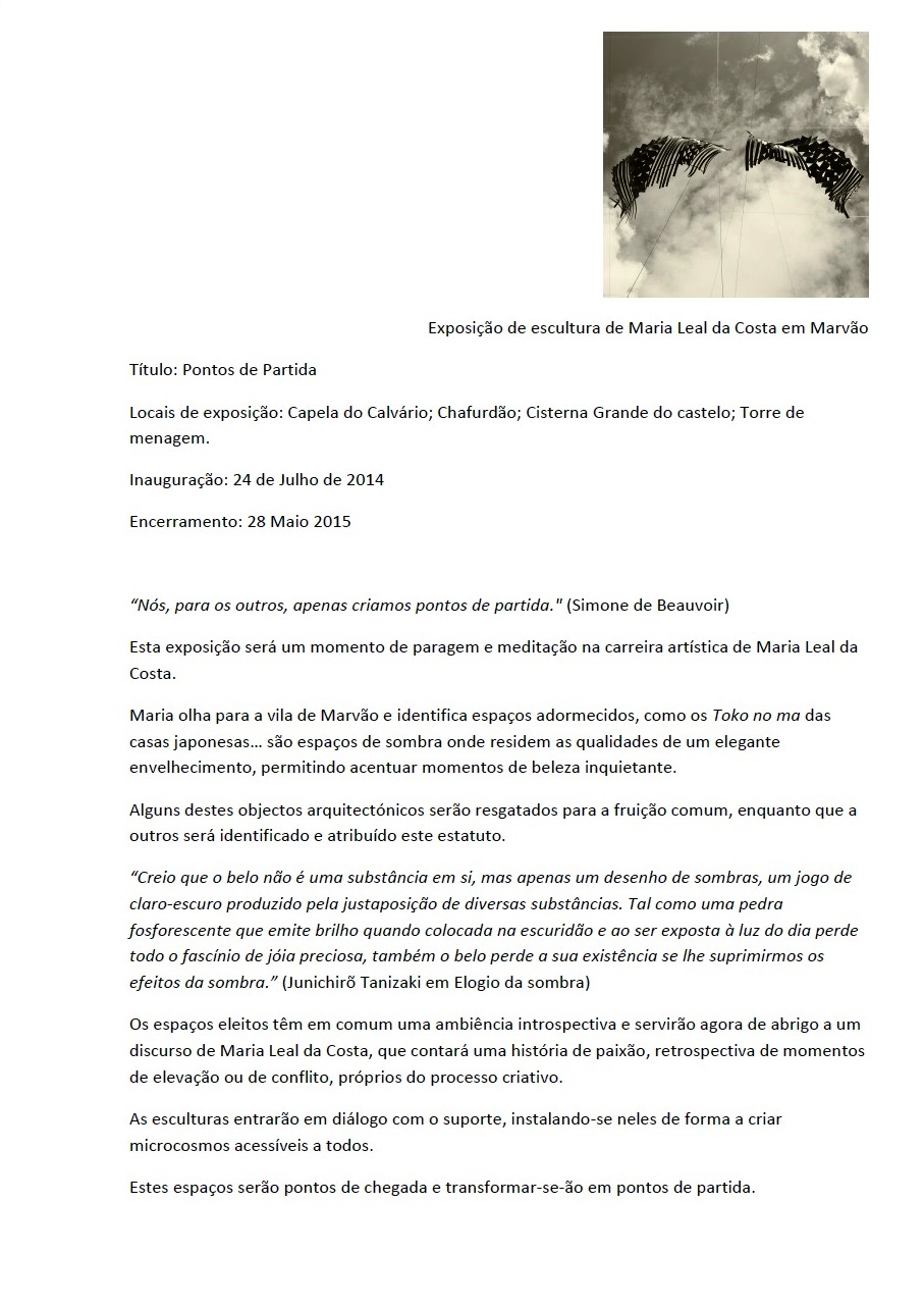 A Exposição “Pontos de Partida” estará patente, em Marvão, até ao dia 28 de Maio de 2015.