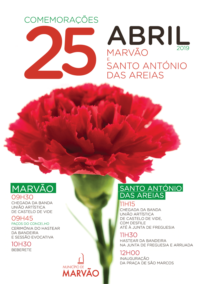 A efeméride vai ser comemorada com o intuito de perpetuar os valores de Abril, e conta com uma atuação da Banda União Artística de Castelo de Vide, a Cerimónia do Hastear de Bandeiras, a tradicional Sessão Evocativa e um beberete.