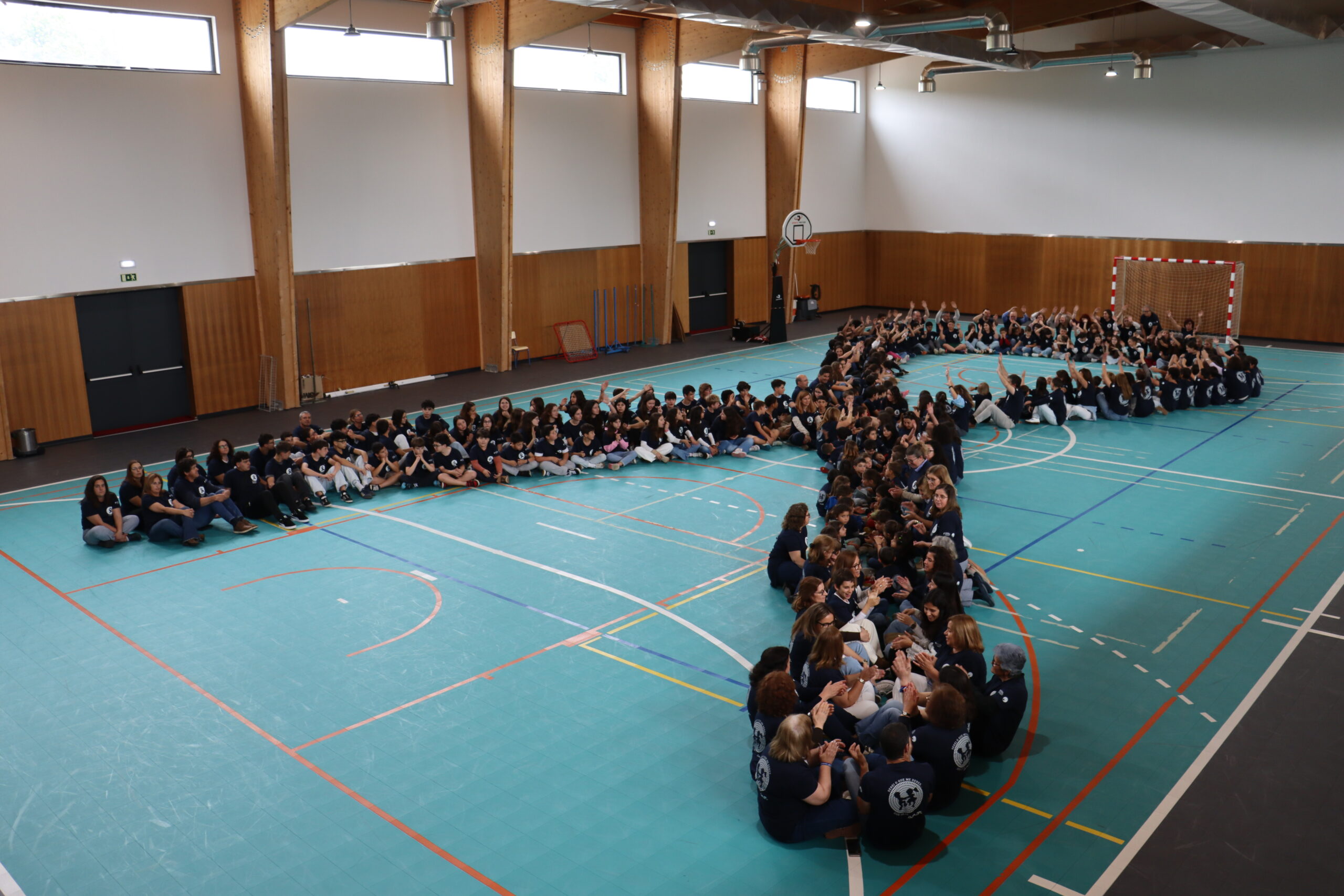Alunos(as), autarcas, docentes e auxiliares participaram nesta iniciativa, que simboliza o compromisso da comunidade escolar com a defesa dos direitos das crianças e jovens.